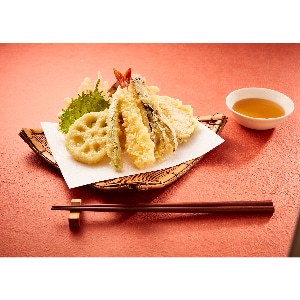 打ち粉を必要としない天ぷら粉。軽い食感ながら、経時耐性が良く、サクッとした食感が長持ちします。